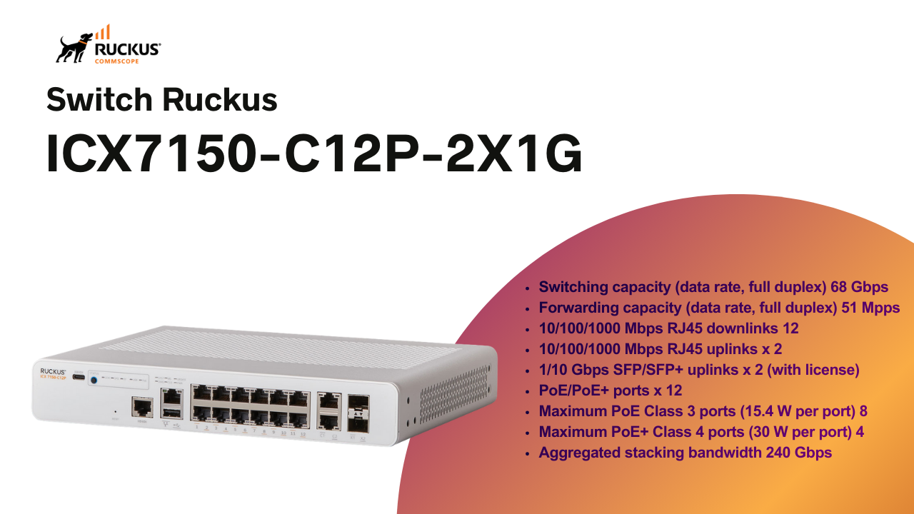 Thông số cơ bản của Ruckus ICX 7150 PoE switch 12 Port ICX7150-C12P-2X1G